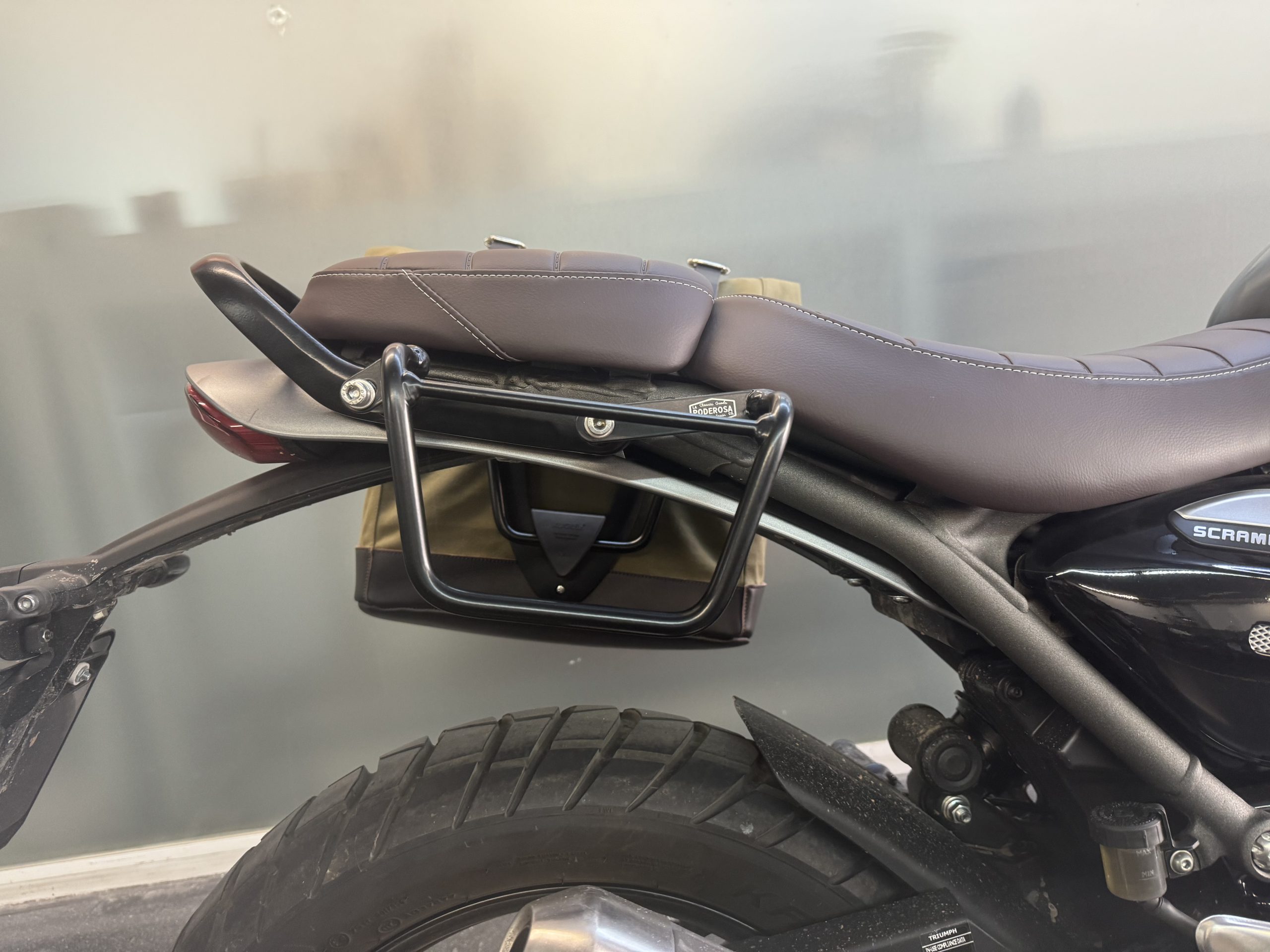 Stahlrahmen in Satin Black Finish für Triumph Scrambler 400X für 2 Satteltaschen (1 auf jeder Seite).