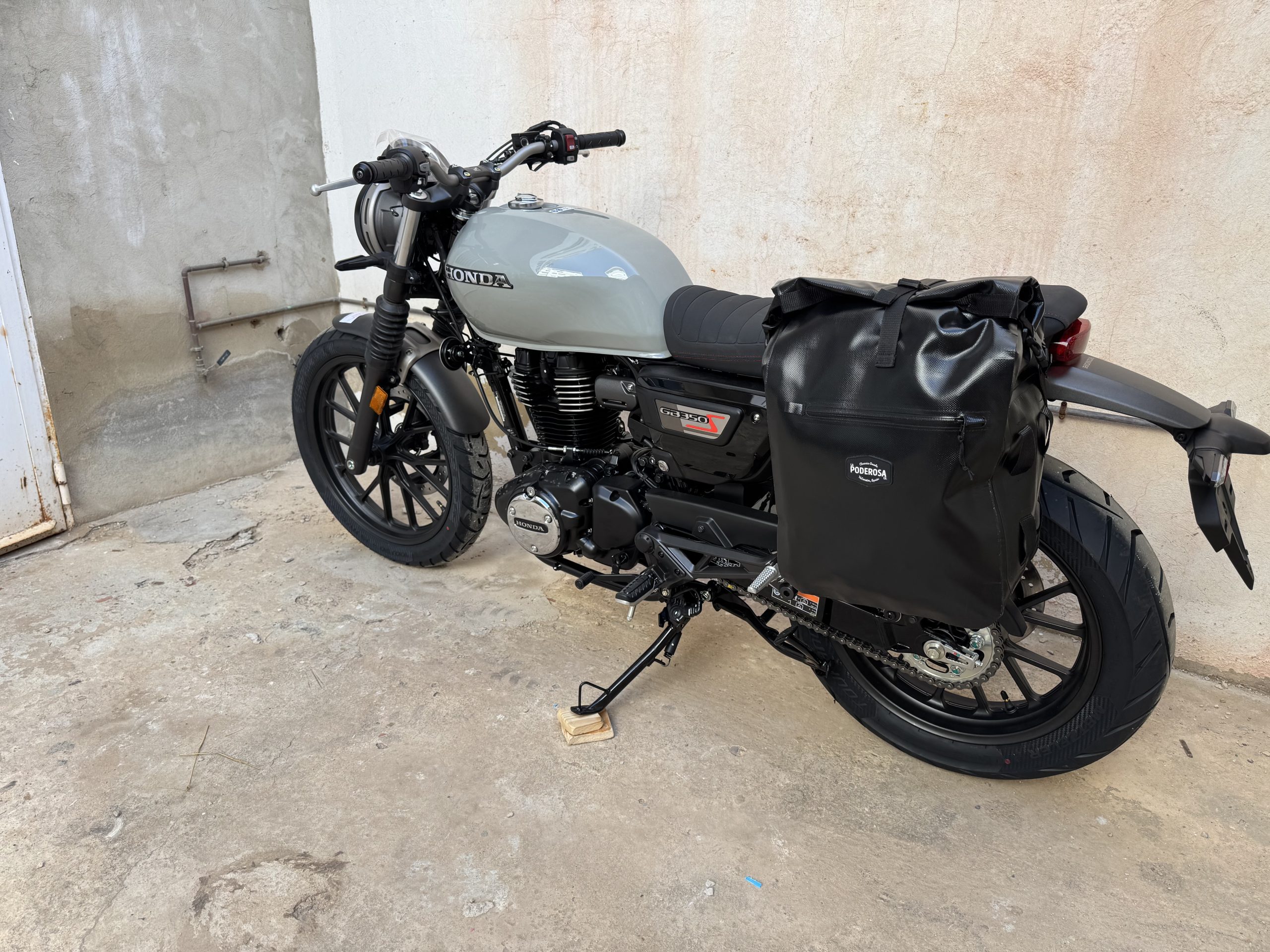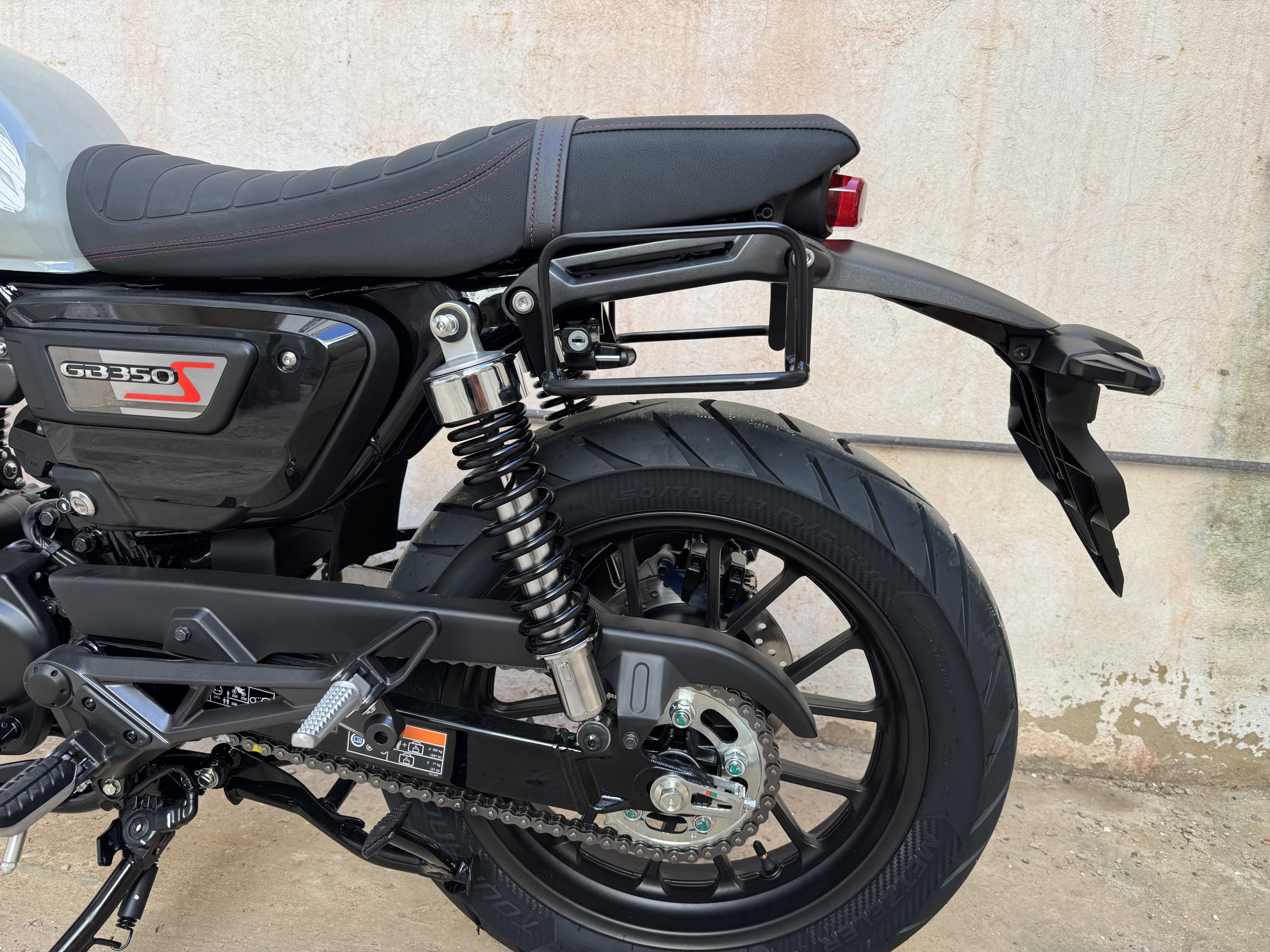 Marco de acero en acabado Negro Satinado para Honda GB350S para una alforja en el lado izquierdo.